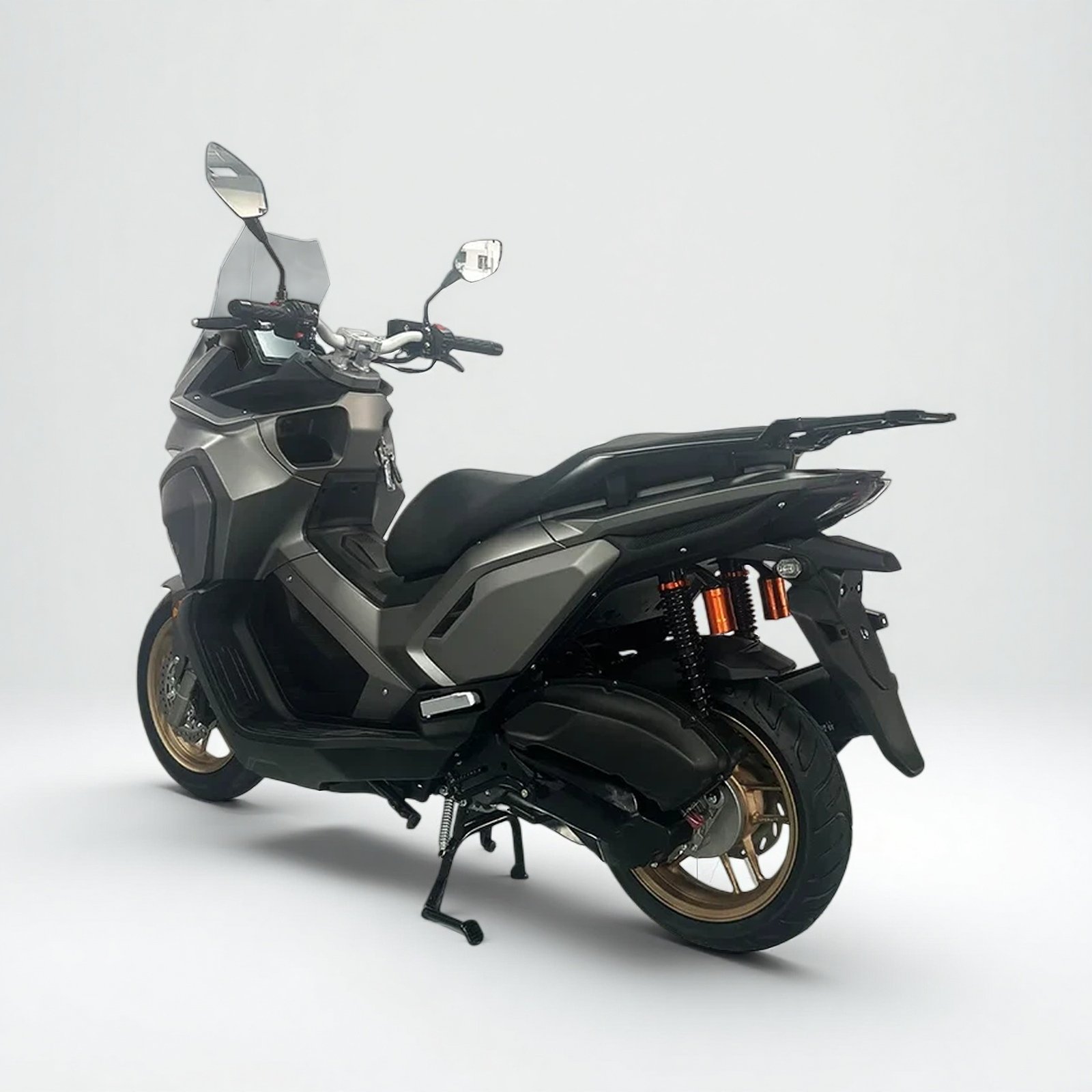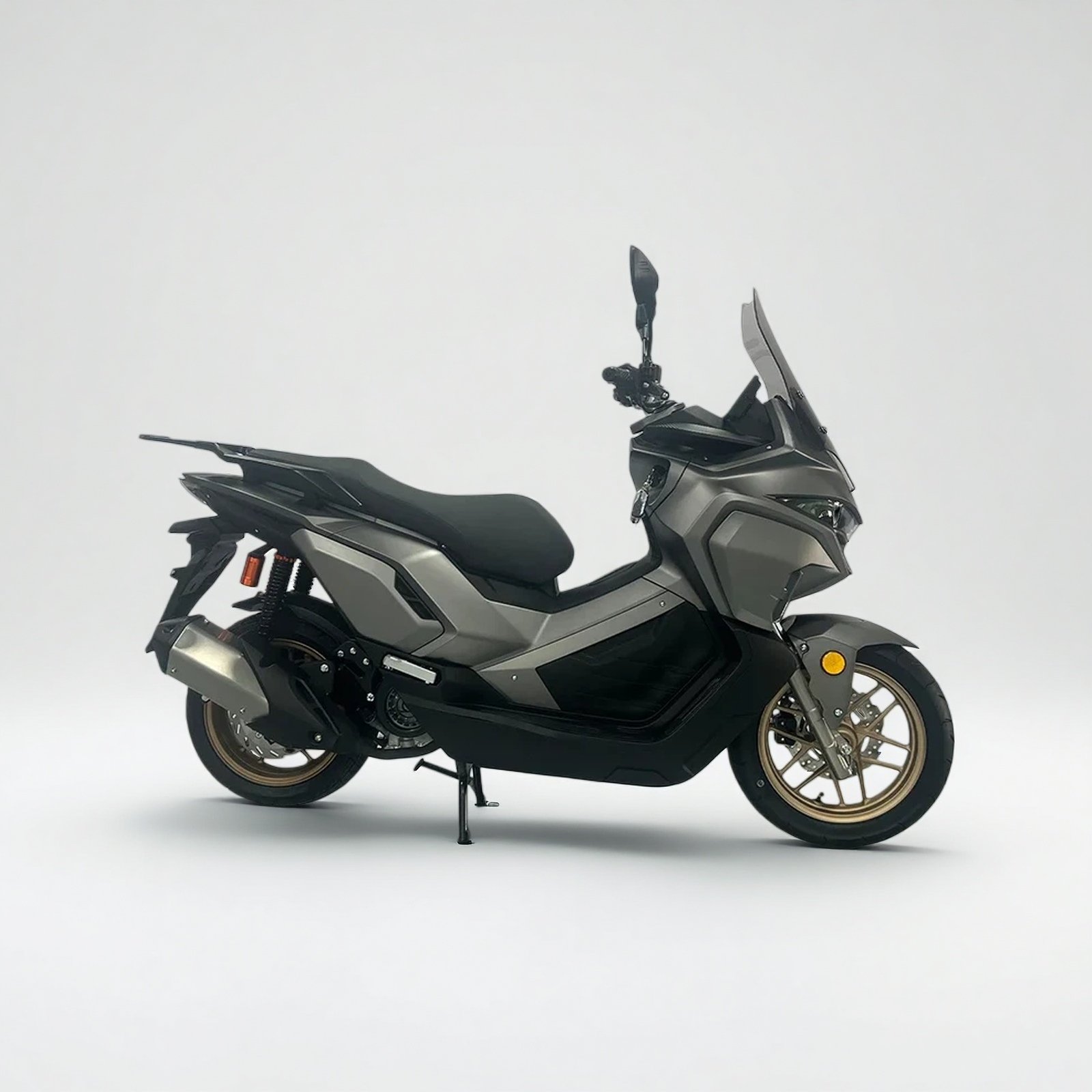 Safety features have been comprehensively upgraded: The front and rear dual disc brake system delivers more linear and powerful braking performance, handling unexpected road conditions with greater ease; the combination of hydraulic front suspension and spring-hydraulic rear suspension effectively filters bumps, balancing comfort and support. 14-inch front and 13-inch rear alloy wheels, paired with 110/80-14 front tires and 130/60-13 rear tires, provide stronger grip and better off-road capability, adapting to various road conditions. A 4.5-liter fuel tank, LCD instrument panel, and keyless start via key and remote control ensure convenient and safe travel every time, making it the ideal ride for those seeking a diverse riding experience.