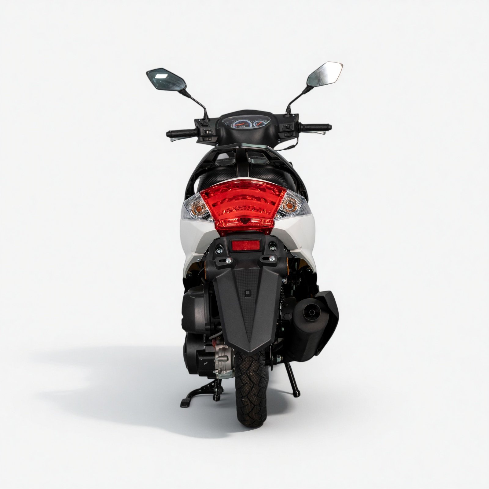 The M10 125cc scooter is a modern commuter scooter designed for riders who want smooth performance, easy handling, and reliable safety. Equipped with a dependable GY6-125cc engine, it ensures fuel efficiency and stable acceleration. With hydraulic suspension, disc brakes, aluminum wheels, LCD dashboard, and a 4.5L fuel tank, M10 offers premium comfort for city commuting.
