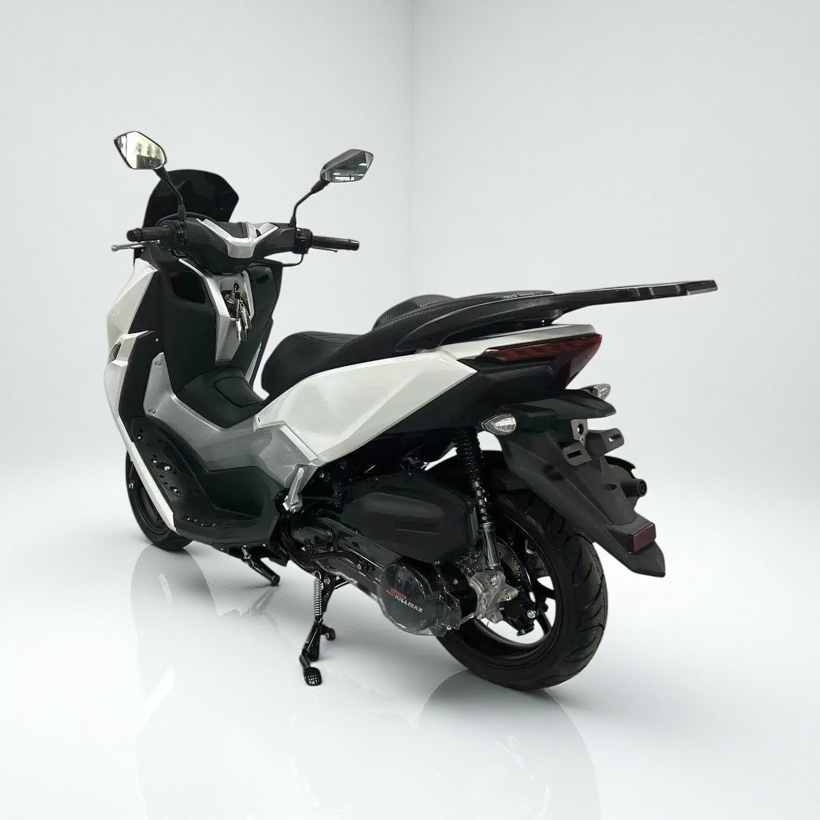 RAPTOR 149cc scooter is a premium commuter scooter designed for riders who want stylish design, strong performance, and safety. Powered by a GY6-149cc engine, it delivers smooth acceleration and excellent mileage. With remote start, hydraulic suspension, disc brakes, aluminum wheels, LCD dashboard, and practical fuel tank, RAPTOR offers premium comfort riding.