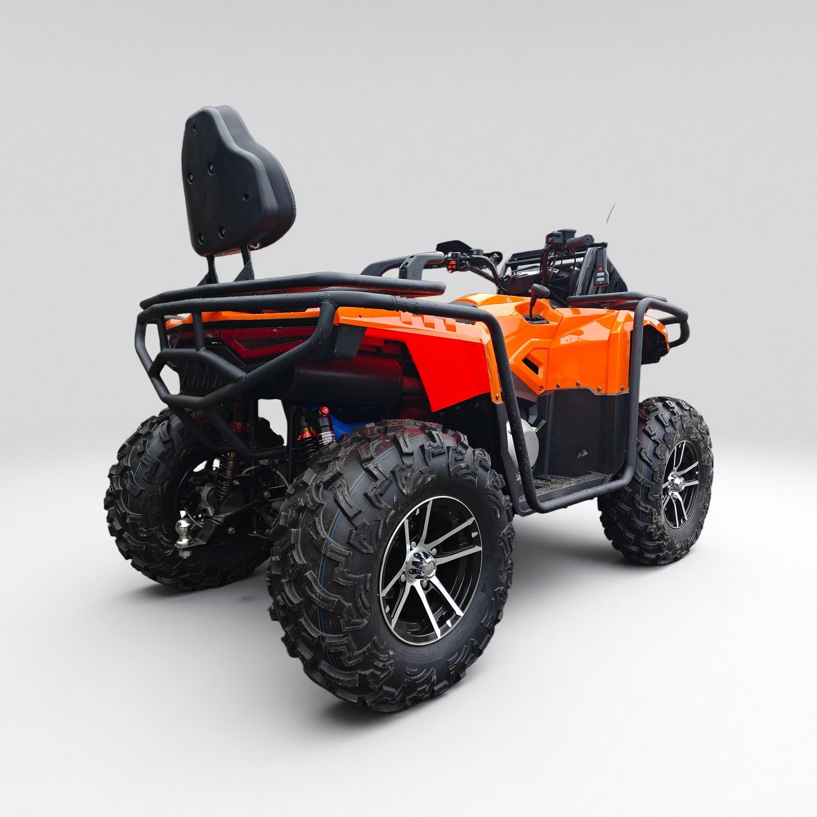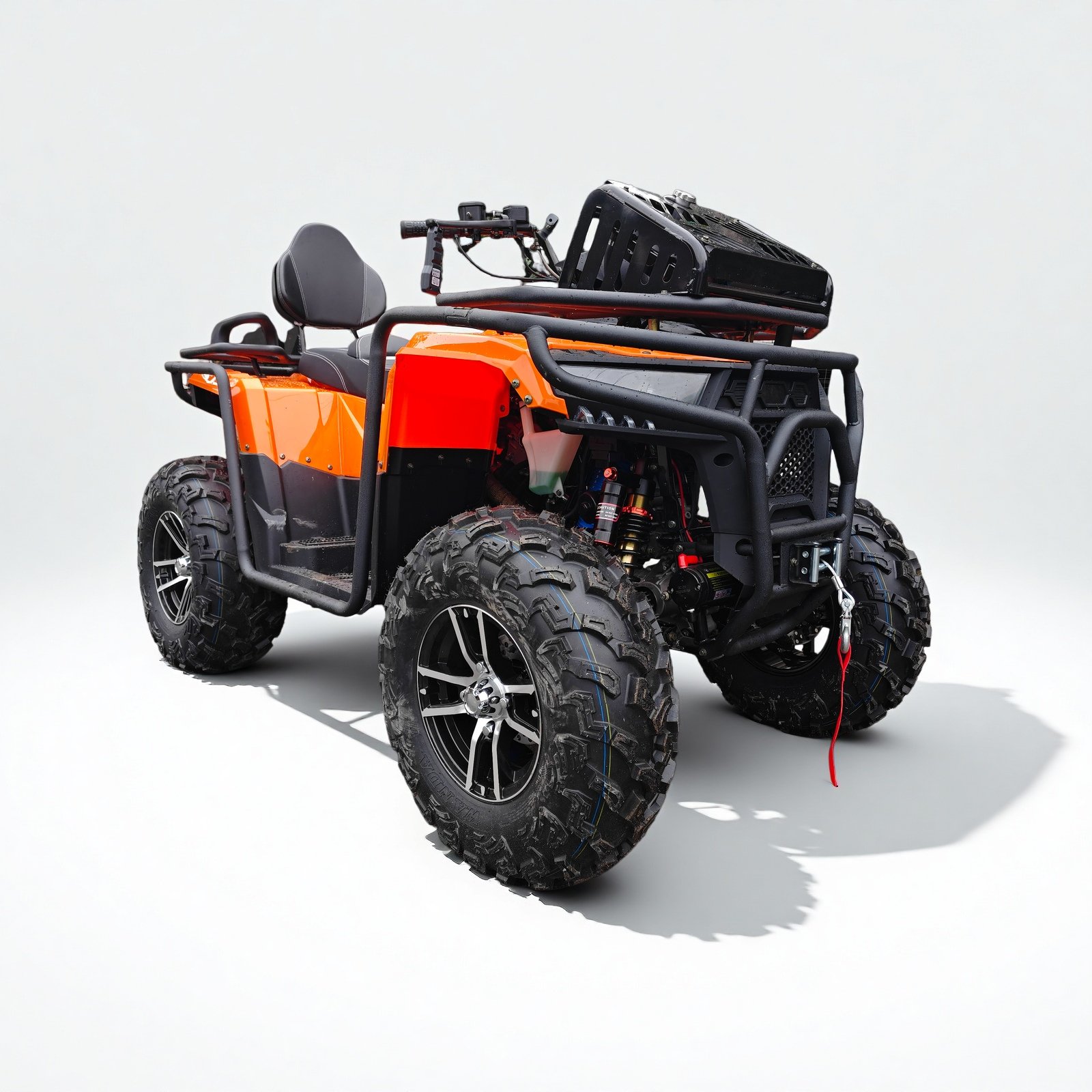 3000lbs winch + front/rear racks + tow ball, master rescue, cargo and towing; front/rear disc brakes + EPS steering, safe and easy to drive!
