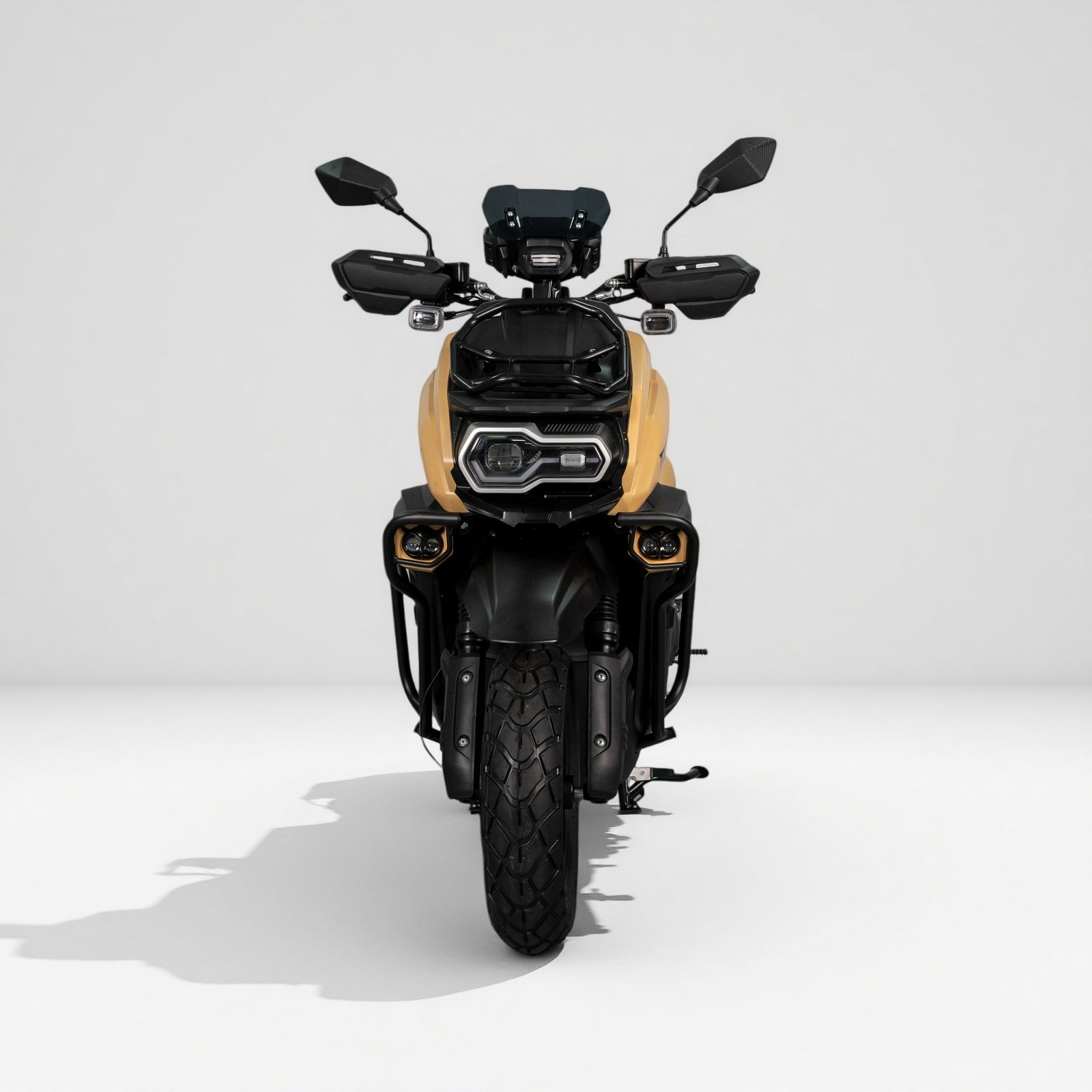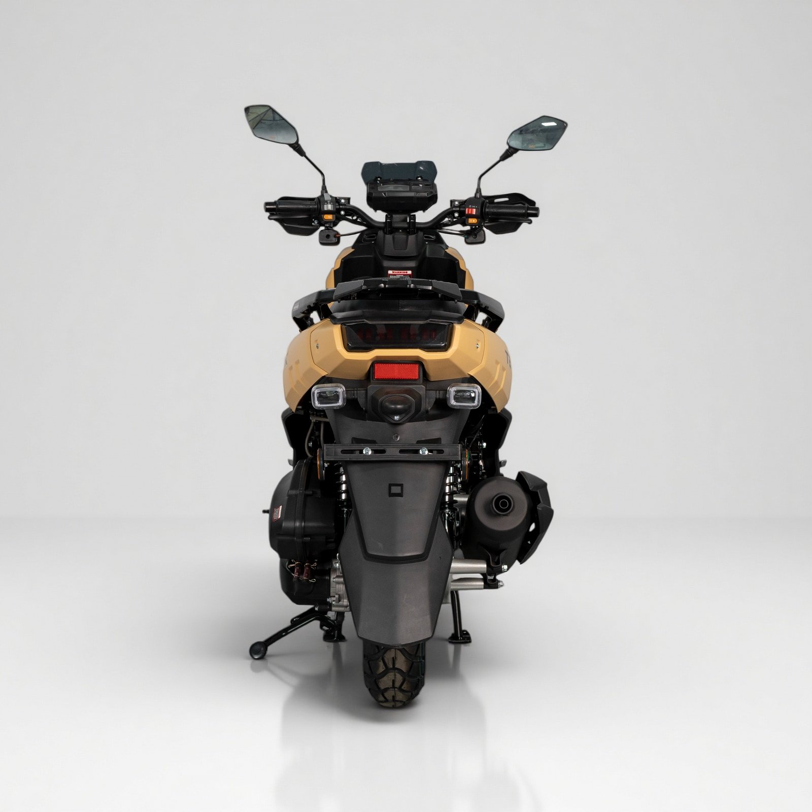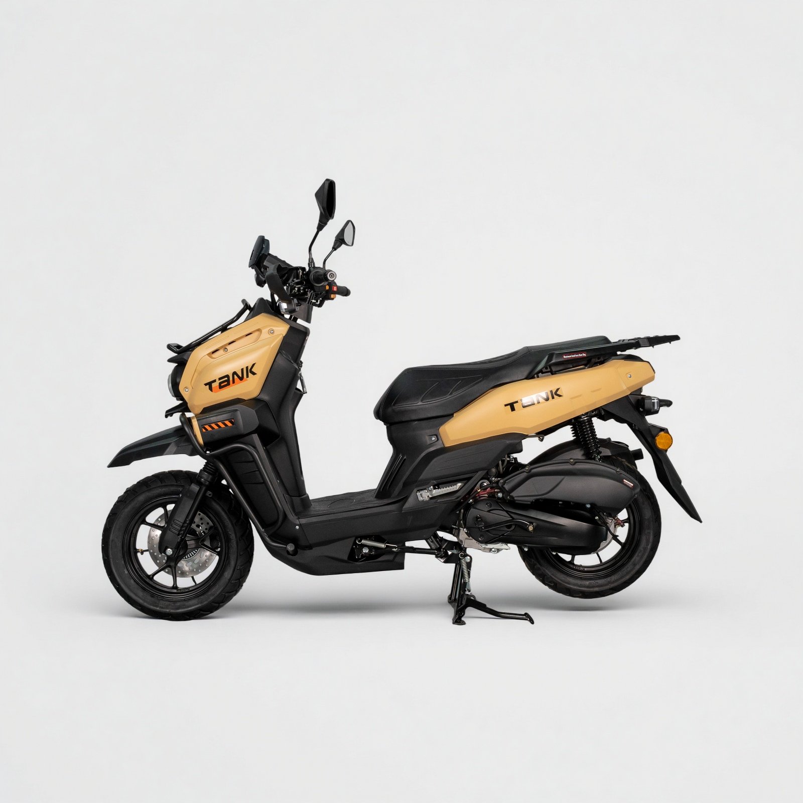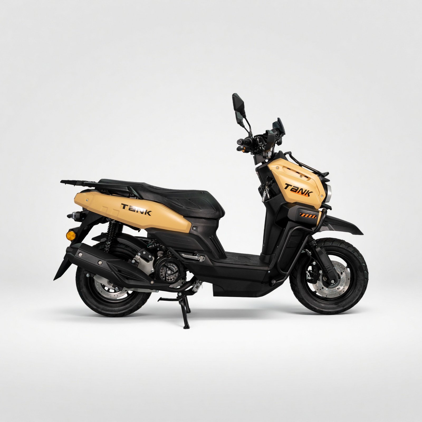 The TANK-3 149cc scooter is a modern rugged scooter designed for riders who want durability, smooth riding comfort, and strong everyday performance. Equipped with a reliable GY6-149cc engine, it ensures smooth acceleration, stable cruising, and fuel-efficient performance. TANK-3 includes Key Start + Remote Keyless Start, premium hydraulic suspension, and Front & Rear Disc Brakes for maximum safety. With aluminum wheels, wide tires, LCD dashboard, and a 7L fuel tank, TANK-3 is ideal for riders seeking rugged comfort and reliability.