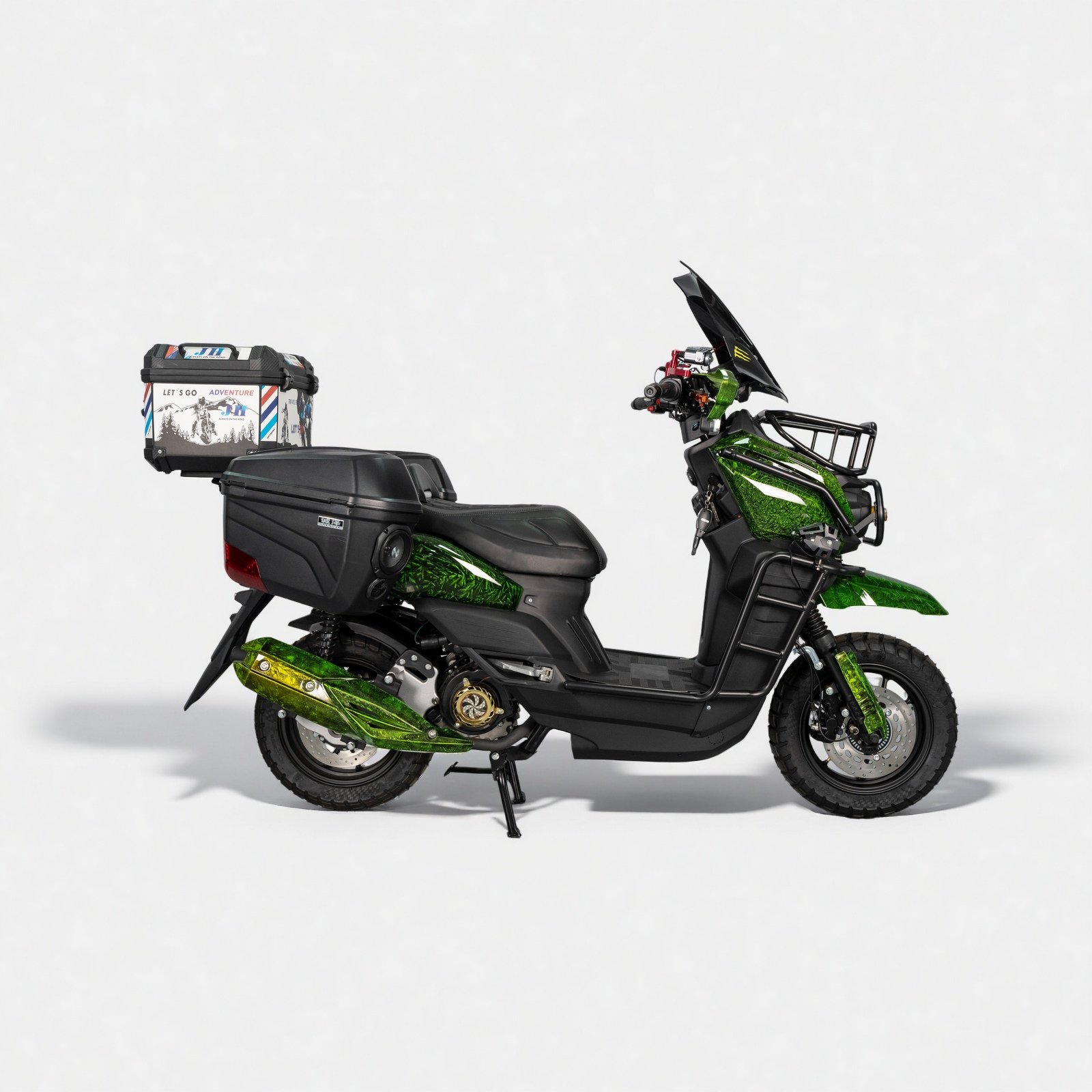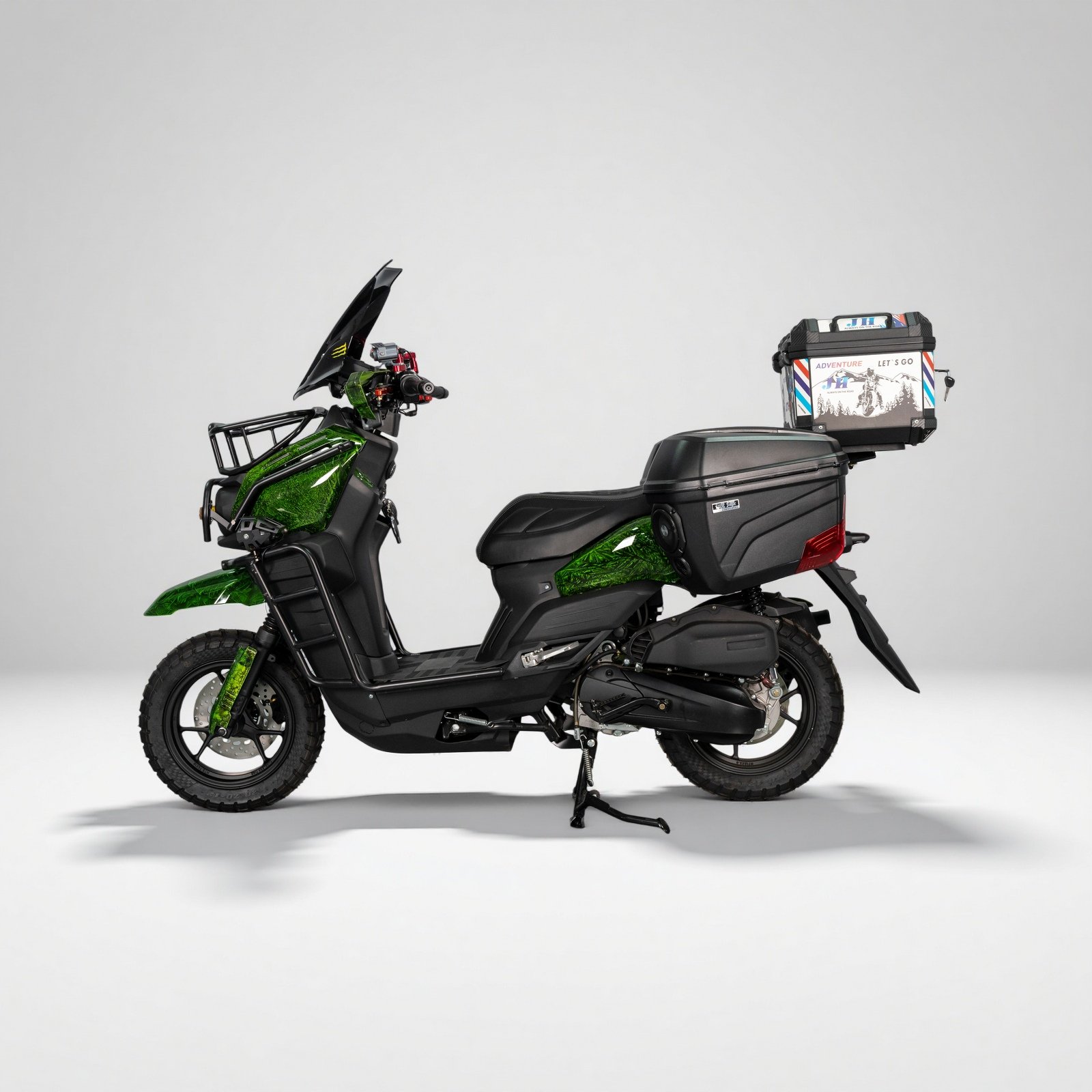 The TANK-Retrofit scooter is designed for riders who want durability, comfort, and reliable daily performance. Powered by a GY6-149cc engine, it delivers smooth acceleration and stable cruising. It includes Key Start + Remote Keyless Start, premium suspension comfort, and Front & Rear Disc Brakes for safety. With aluminum wheels, wide tires, LCD dashboard, and 7L fuel tank, TANK-Retrofit is ideal for rugged commuting.