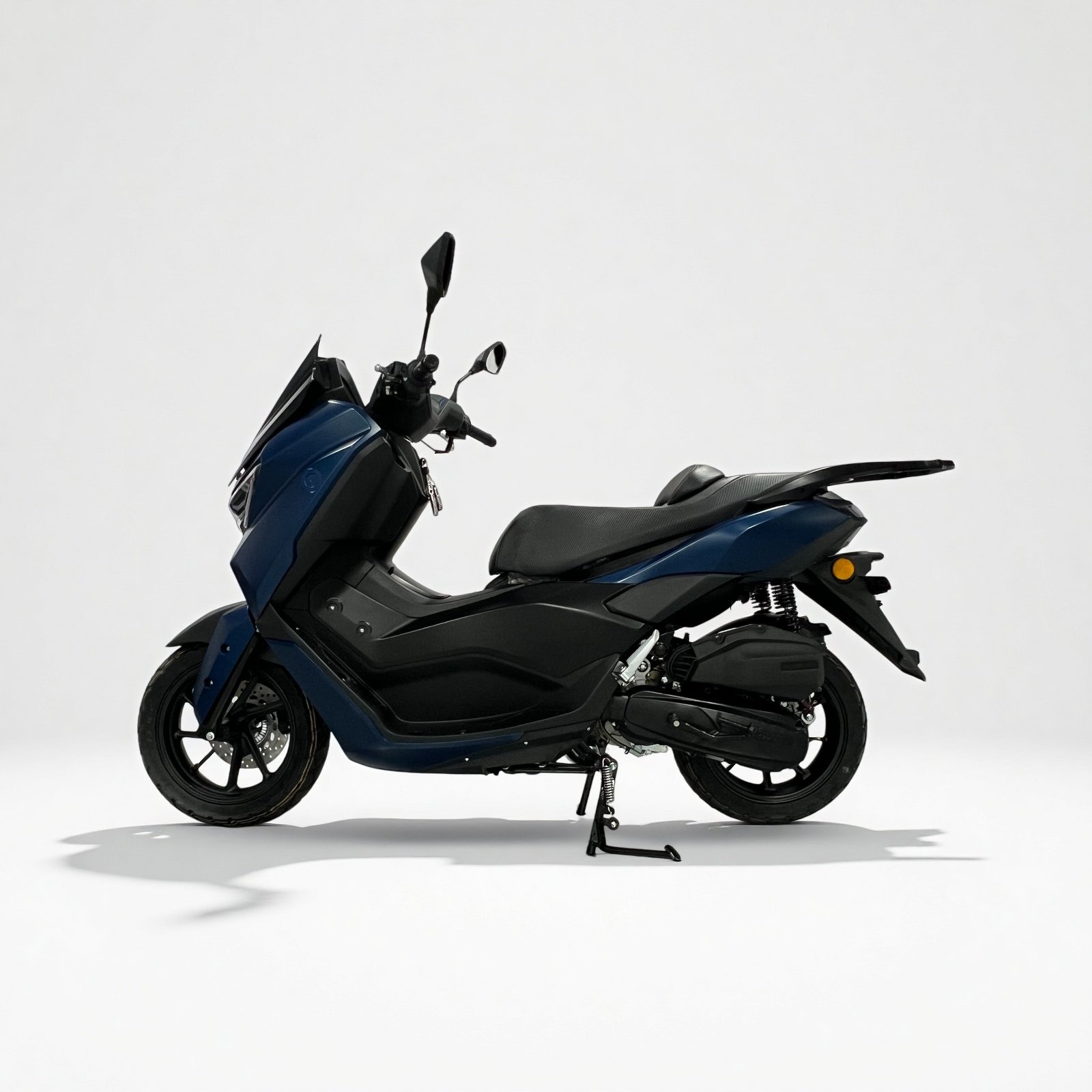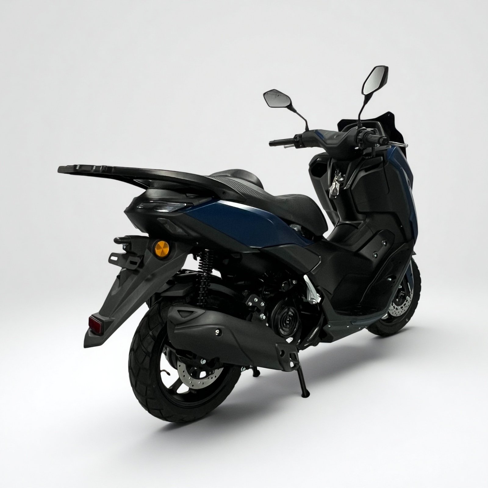 Z5 149cc scooter offers sporty styling and reliable commuting performance. Equipped with a GY6-149cc engine, it provides smooth acceleration and stable handling. It includes remote keyless start, hydraulic suspension, disc brakes, aluminum rims, LCD dashboard, and a 7L fuel tank.